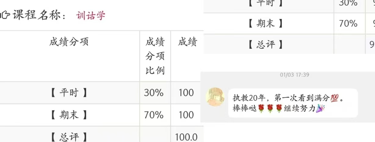 徐鑫训诂学的成绩和安兰朋老师的评语