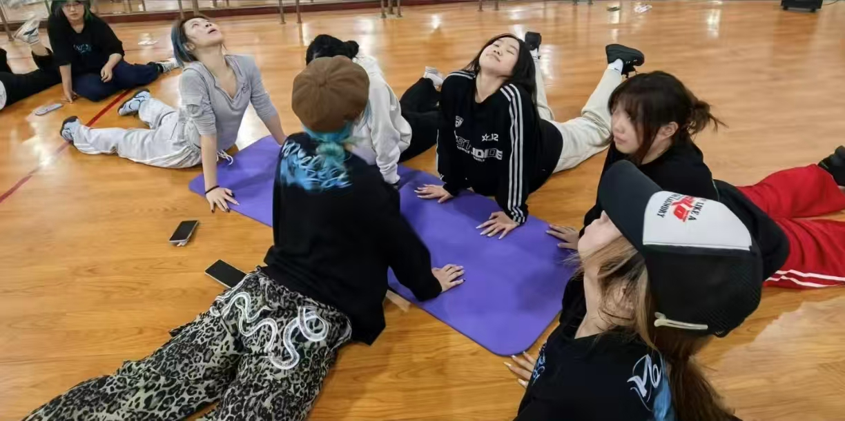 “刚入队时真挺手足无措的 —— 我只练过拉丁舞,风格和群舞的节奏、队形完全不搭,总跟不上进度。” 叶宸羽笑着回忆,“多亏学长学姐们耐心,牺牲休息时间手把手教我抠动作、找节奏,慢慢帮我找回了练舞的底气。”如今,她也把这份温暖传递下去 —— 训练间隙会主动疏导新生情绪,遇到基础薄弱的成员,会额外安排小课辅导。“我们不是‘训练机器’,而是一起成长的伙伴,这份默契比技术更重要。” 叶宸羽说。