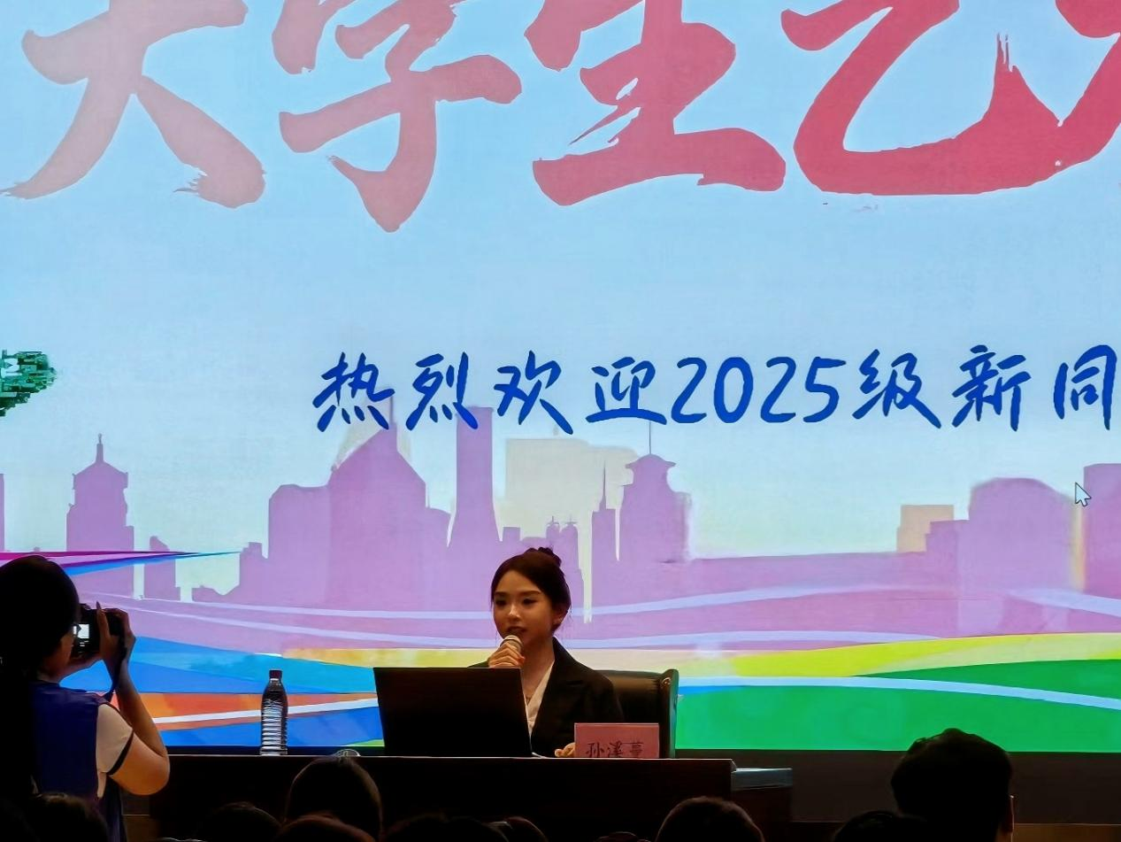 就在她迷茫之际,曲艺部的前辈们主动伸出援手。“别怕,我们带你上”,前辈们为她争取部门汇报、校园露天活动等发言机会,陪她逐字顺稿、细抠语气,手把手教她调整呼吸、眼神交流,上台前那句 “沉下心才能做好” 的叮嘱,更是成了她的定心丸。经过一次次舞台实战打磨,于汶鑫彻底褪去青涩胆怯,如今面对设备故障、流程调整等突发状况,都能沉着应对,用稳健表现稳住全场。