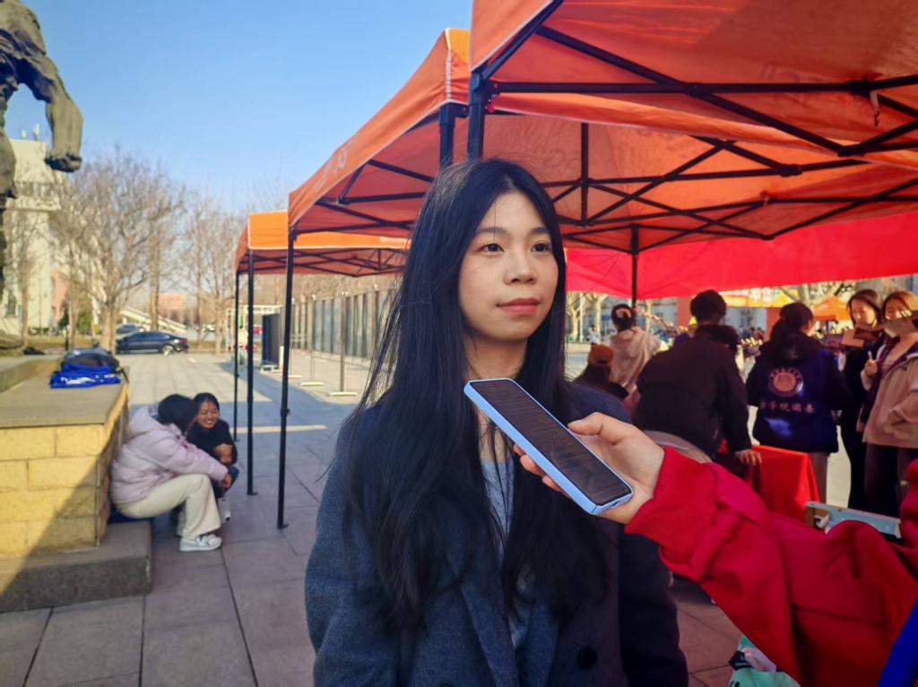 图为活动工作人员汉语言二班戴嘉欣现场接受采访