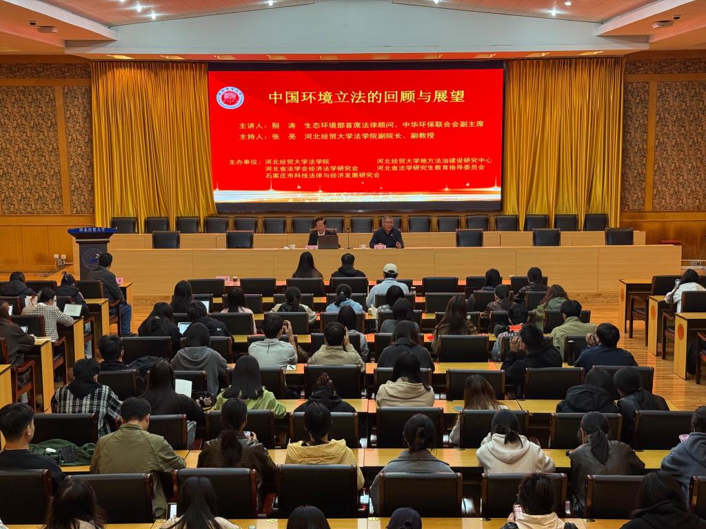 10月18日下午,法学院邀请生态环境部首席法律顾问、中华环保联合会副主席别涛以“中国环境立法的回顾与展望”为题作学术报告。法学院副院长张亮主持,法学院赵一强教授、王康副研究员等200余名师生参加。