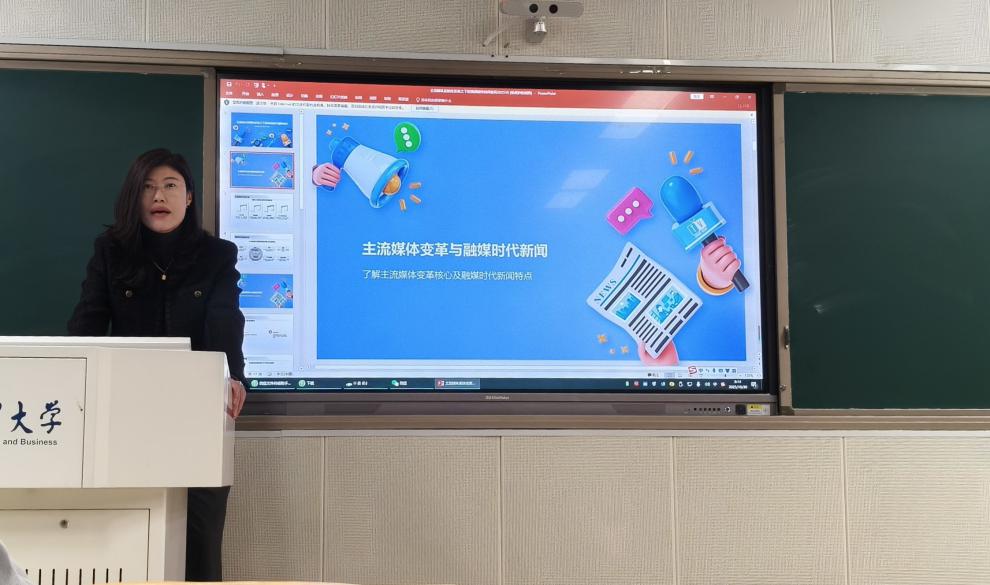 10月30日上午,新闻与文化传播学院邀请长城新媒体集团冀云平台运营中心副主任刘瑾妍在B教308教室开展专题讲座,讲座主题为“主流媒体系统性变革之下短视频创作如何破局”,新闻传播学专业60余名学生参加。