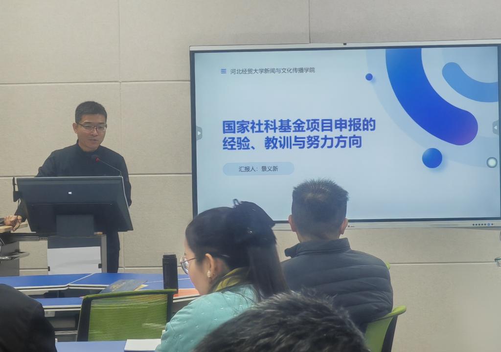 景义新教授结合多年国社科申报实践,总结成功经验与失败教训,提出从选题、成果、论证及专家指导等方面,提升申报成功率。他提出,成功经验聚焦三点:一是选题精准新颖,紧扣学术前沿与行业动态,以独特视角凸显价值;二是研究方法扎实多元,运用问卷调查、访谈等保障研究科学性;三是前期成果过硬,产出专著且获省社科二等奖,筑牢申报基础。失败教训主要有三:其一选题短板明显,创新性不足、观点凝练不精,题目缺乏吸引力;其二论证不够充分,文献梳理不全面、调研深度不足,方案说服力弱;其三理论适配性差,盲目套用国外理论解释本土实践,出现 “水土不服”。