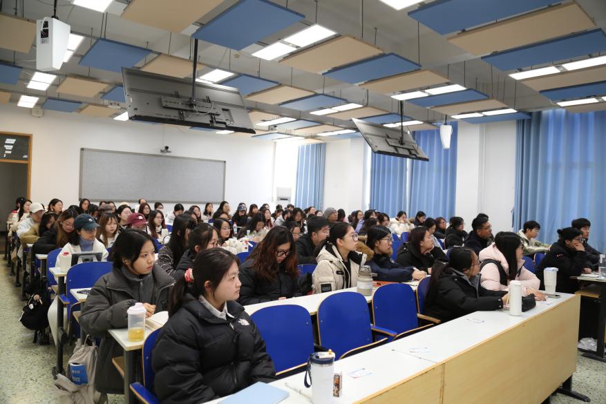 随后,蒋建国教授从费孝通先生的学术思想切入,深入阐释了“心态秩序”这一核心概念。他谈到,费孝通的社会学与民族学研究强调“既关心人的物质生存状态,也关注人的精神生存状态”,这一理念为理解当代情感传播问题提供了重要理论支撑。他系统梳理了情感社会学的发展脉络,介绍了不同阶段学者的核心观点,并重点剖析了当代情感社会学研究的现实议题:自媒体在为公众疏解焦虑提供多元渠道的同时,也放大了网络中的各类问题。他结合微信成瘾现象,提醒学生避免过度沉迷虚拟社交而导致生活空虚,倡导合理使用社交工具、培育理性社交观念。
