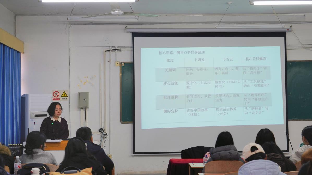 针对“新阐释”与“新思路”,张芸强调,文化功能从“满足需求”到“养心育情”的转变,彰显了马克思主义新闻观“以文化人、凝心铸魂”的使命担当;文化科技观从“数字化”到“数智化赋能”的变革,是遵循“科技是第一生产力、人才是第一资源、创新是第一动力”的具体实践,为社会主义文化繁荣发展注入新动能。针对当前部分文化政策解读深度不足问题,张芸建议同学们夯实马克思主义理论基础,深入研读权威政策文献与马新观经典著作,学习其中的立场、观点、方法,不断提升解读的专业性与思想性。
