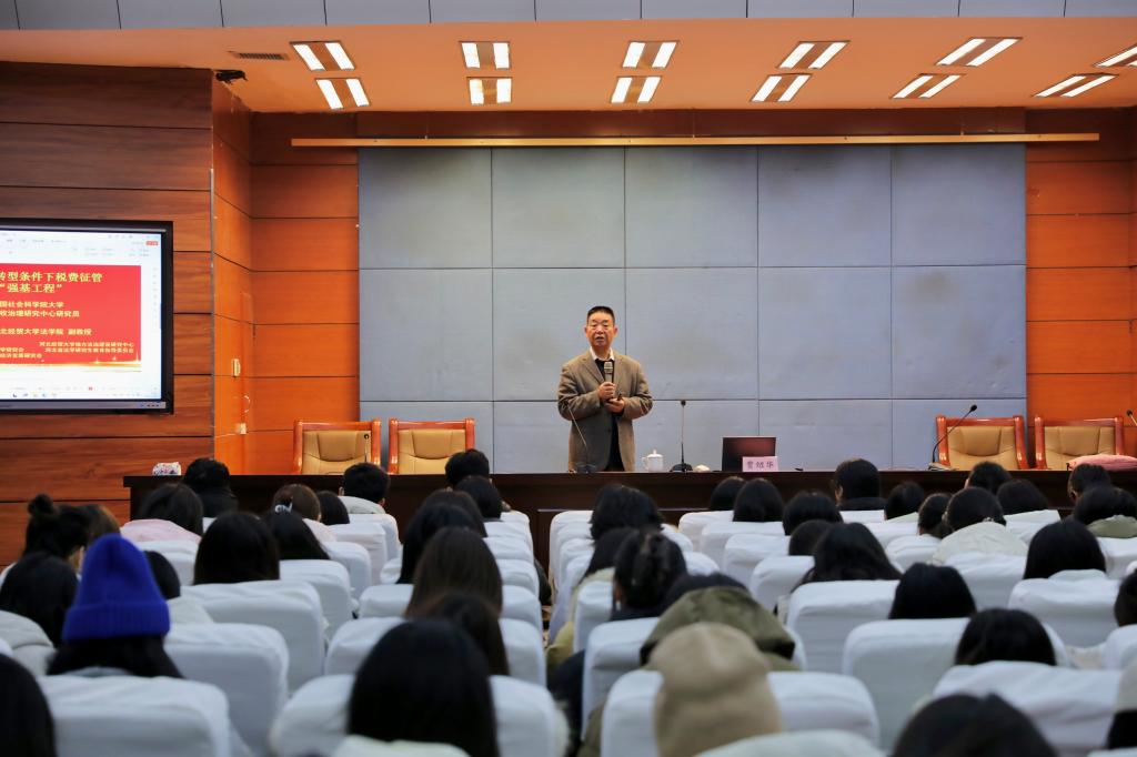 11月28日,法学院特邀中国法学会财税法学研究会副会长、中国社会科学院大学税收治理研究中心研究员贾绍华以“数字化转型条件下税费征管‘强基工程’”为题作学术报告。此次报告由法学院师璇副教授主持,法学院和财税学院160余名师生参加。