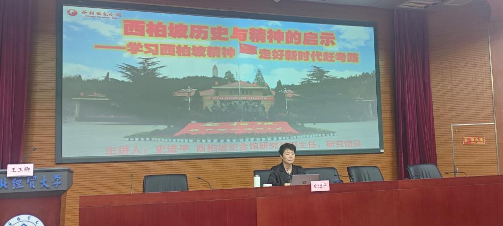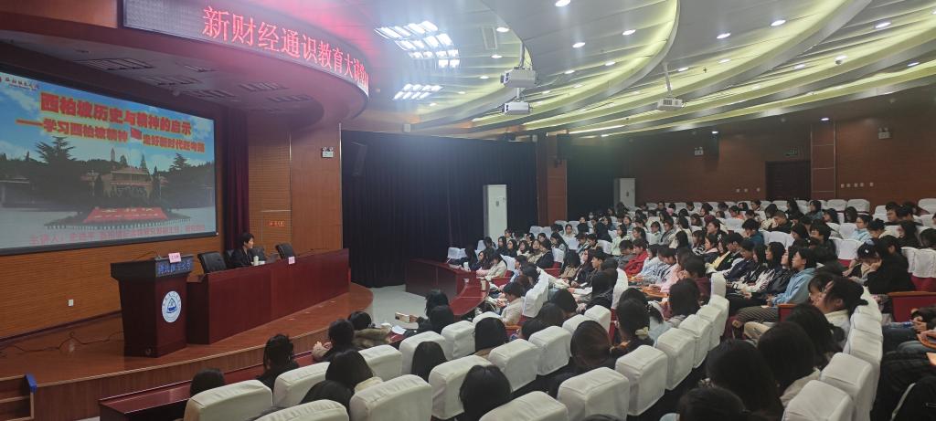 3月16日下午,本学期《新财经通识教育大讲堂》第2讲(总第113讲)在国际学术报告厅举行。西柏坡纪念馆研究部副主任、文博研究馆员史进平老师为我校师生作题为“西柏坡历史与精神的启示——学习西柏坡精神 走好新时代‘赶考'路”的学术报告,报告由图书馆副馆长王玉卿主持,270余名师生参加。