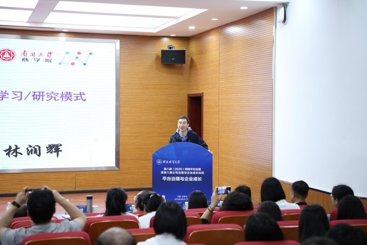 南开大学商学院副院长林润辉教授作题为“智慧科学如何重塑学习/研究模式”的主题报告。他首先从AI的发展历程切入,论述了AI与人类智能之间的关系,即二者可以相互学习、相互促进;其次,从智能的本质与条件出发,强调智能是系统或智能体在复杂环境中的自适应能力及迭代学习过程,其必要条件有载体、数据等,网络是智能的支撑结构;再次,在界定智能科学概念的基础上,论述了AI从科研流程重构、生产率提高、生产关系调整、体系变革、人类工作辅助及替代等方面对科研和社会科学的影响;最后,论述了AI与创新、治理之间的关系,如搭建人机协作创新模拟平台。从组织视角重新审视多层级协同治理,重新审视人机分工等。