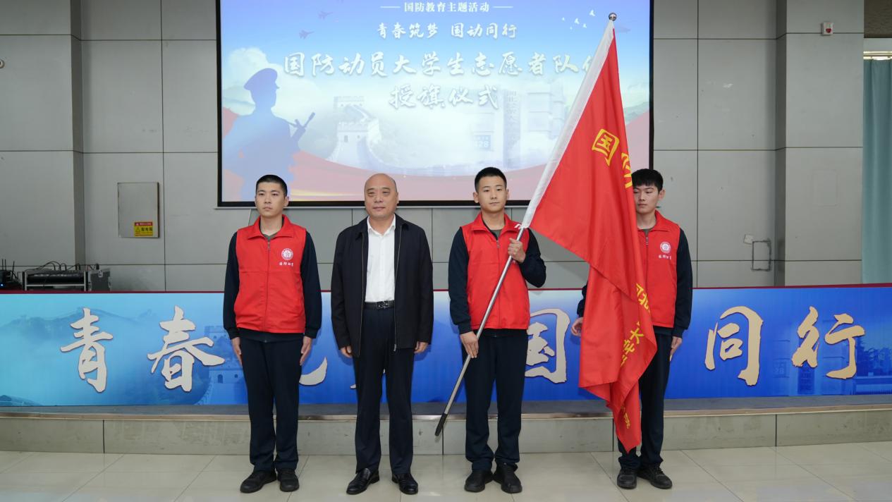 活动现场,任玉芳为学院国防动员志愿者队伍授旗,志愿者代表宣读倡议书,发出了“勇担使命,强国有我”的青春誓言。