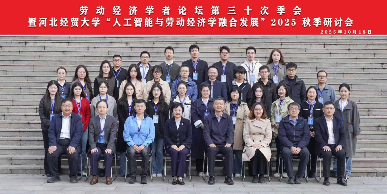 10月18日,“中国劳动经济学者论坛第三十次季会暨‘人工智能与劳动经济学融合发展’2025秋季研讨会”在河北经贸大学召开。本次研讨会由中国劳动经济学者论坛理事会主办,河北经贸大学经济学院承办。河北经贸大学党委书记李晓华,中国劳动经济学者论坛轮值主席、东北财经大学副校长王伟同出席本次会议并致辞。校党委常委、副校长王重润主持开幕式。来自北京大学、中国人民大学、北京师范大学、上海财经大学、东北财经大学等多所高校的50余名师生参加了本次会议。