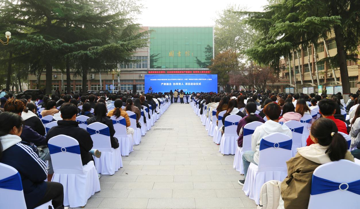 为进一步深化就业工作“校政企家”深度合作理念,构建数字贸易人才培养新模式,促进教育链、人才链、产业链与创新链的深度融合,10月29日,由经济管理学院同衡水市商务局、阿里国际站数字贸易人才基地联合主办的“产教融合、协同育人”项目正式启动。校党委常委、副校长耿辉建,衡水市商务局党组成员、副局长刘芸,河北省教育厅原一级调研员、学生就业创业事务中心原主任、河北省大学生就业创业协会理事长王士平,河北省大学生创业孵化园总经理韩宏信,阿里巴巴国际站校企合作负责人杨莉莉、阿里巴巴国际站(冀南)本地渠道商总经理王朝军,校就业指导服务中心主任池晶和学院领导出席启动仪式,30多家优秀企业家代表同学院师生一起见证了这一时刻。