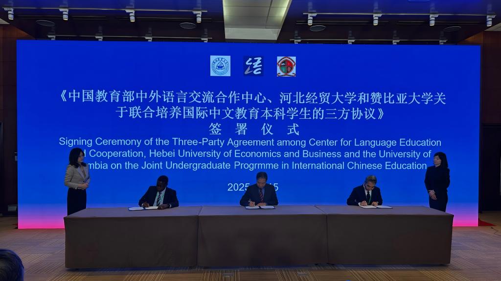 开幕式上,赞比亚教育部法务主任Derick Kakusa代表赞比亚教育部与我国教育部签署《中华人民共和国教育部与赞比亚教育部关于合作开展中文教育的谅解备忘录》。大会期间,高波代表我校与教育部中外语言交流合作中心、赞比亚大学签署了《关于联合培养国际中文教育专业本科学生的三方协议》。他还与赞比亚教育部法务主任Derick Kakusa和赞比亚大学校长Mundia Muya就落实两国教育部谅解备忘录,进一步深化赞比亚国际中文教育和孔子学院发展进行了深入交流。