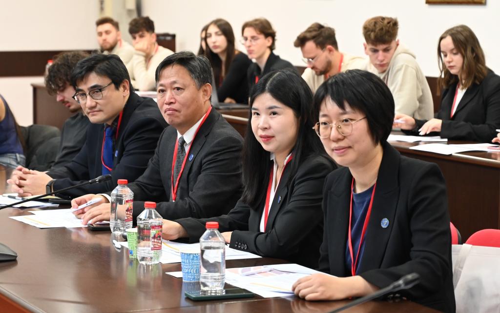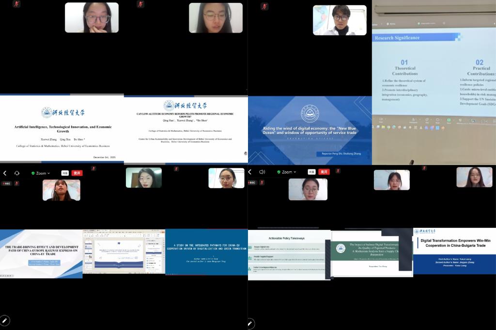 我校代表团积极活跃于会议现场。国际交流中心主任商利伟作致辞发言;经济学院讲师郎郸妮在分论坛上作学术汇报,与各国学者展开实时学术对话;发展规划部部长王琦、管理科学与信息工程学院讲师寇晨欢分别就学术问题与参会嘉宾进行深入交流。同时,我校硕士研究生团队通过线上连线方式,在相关分论坛同步完成了论文汇报,实现了线上线下联动的学术交流。师生们的研究议题涵盖数字经济发展与数字化转型、国际金融与贸易治理等领域,展现了我校在经济、贸易领域的学术积累。
