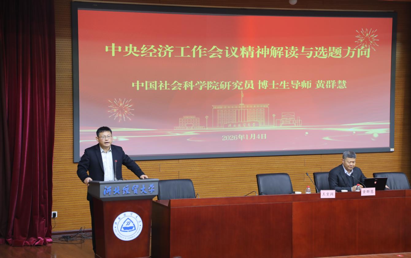 1月4日上午,我校在国际学术报告厅举办 “中央经济工作会议解读与选题方向”专题讲座,特邀中国社科院经济研究所研究员黄群慧担任主讲人。校党委书记李晓华会见了黄慧群研究员,校党委常委、副校长王重润出席并主持会议,经济学部、管理学部等相关教师参会。
