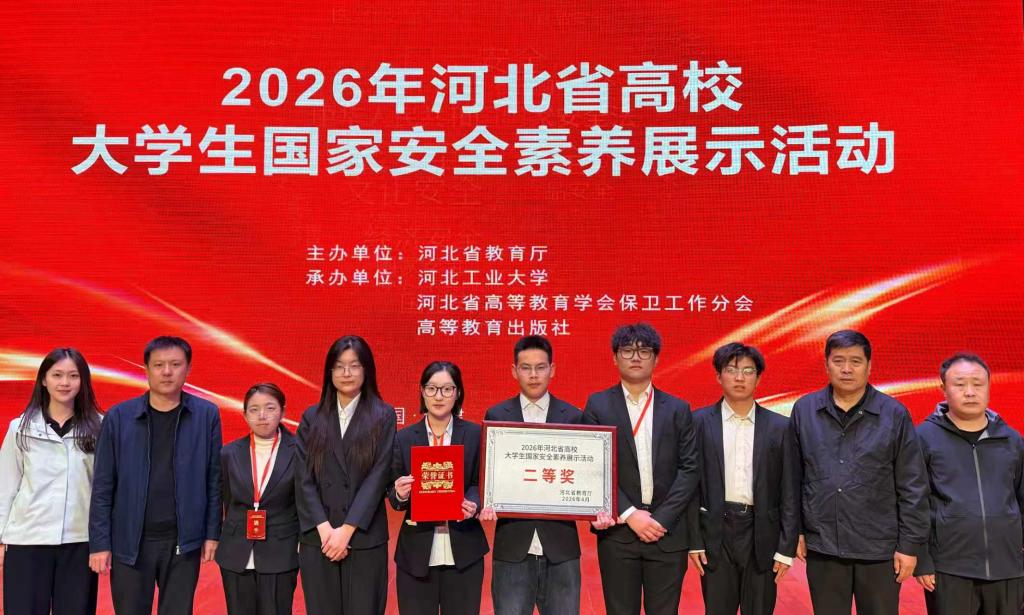4月9日至10日,2026年河北省高校大学生国家安全素养展示活动在河北工业大学举办。本次活动由河北省教育厅主办,河北工业大学、河北省高等教育学会保卫工作分会、高等教育出版社共同承办。我校代表队团结协作、奋勇争先,经过多轮激烈角逐,最终荣获二等奖。
