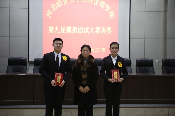 大赛历时一个多月,经过初赛复赛,最终从86名参赛者中选出10名进入决赛。决赛赛事分为自我介绍、无领导小组讨论、压力面试和评委提问4个环节,考察各位选手的基本素质、反应能力、表达能力和组织能力。经过两个多小时的激烈角逐,刘宇涵(文法系)、李珊(会计系)荣获一等奖,苗艺萱(商务系)等3人荣获二等奖,李德金(文法系)等5人荣获三等奖。比赛过程中,观摩的学生代表们认真聆听,从中汲取经验。