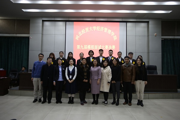 为了还原招聘现场场景,让参赛者切身体验招聘流程,学院特邀北京导氮教育科技责任有限公司教考部经理袁来、石家庄苏宁易购商贸有限公司人力资源部经理姜林、中国民生银行股份有限公司石家庄分行人力资源部经理高璐、河北源达信息技术股份有限公司招聘主管李芸贤、石家庄新东方学校招聘主管孟雨晴担任本次大赛的评委,并对选手进行面试提问。
