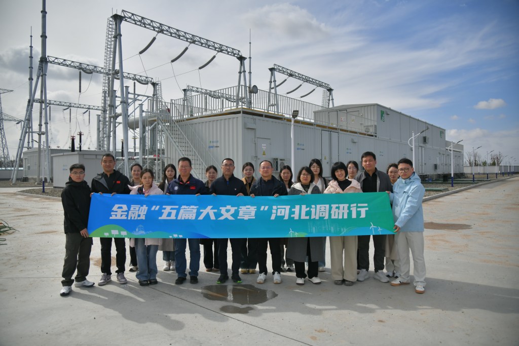 10月12日上午,调研团队首先来到了位于察北区的河北瑞风云联数字新能源有限公司,实地参观了解企业建设、日常运维和发展情况。通过工作人员的介绍,调研团队了解到坐落在这里的储电项目是华北地区最大的入市交易电网侧独立储能电站,占地约158亩(一期98亩、二期60亩),总投资25.2亿元(一期投资15.2亿元,二期计划再投资10亿元)。项目分两期建设,一期已实现并网运营。该电站每年可提供约5亿千瓦时的电力调节资源,相当于张家口市居民年用电量(约32.65亿千瓦时)的15.3%,可为冀北电网区域的电网运行安全提供有力保障。在绿色金融政策加持下,项目建设发展获得了河北银行12亿元贷款支持,也是全省首笔电网侧独立储能电站项目贷款,成为区域绿色金融发展的重要里程碑。面对项目技术复杂、风险评估难度大、业务模式待探索的挑战,河北银行总行分行高效联动:一方面及时反馈技术论证、风险研判等难点,另一方面河北银行总行迅速组建专业团队赴外地实地调研,联合行业专家深入剖析项目方案、市场前景与潜在风险,形成详实评估依据。最终,河北银行张家口分行从服务国家战略与地方发展大局出发,为项目审批通过大额贷款并陆续投放。金融活水的注入解决了企业资金卡脖子的难题,大大提升了该项目的建设和投产速度。