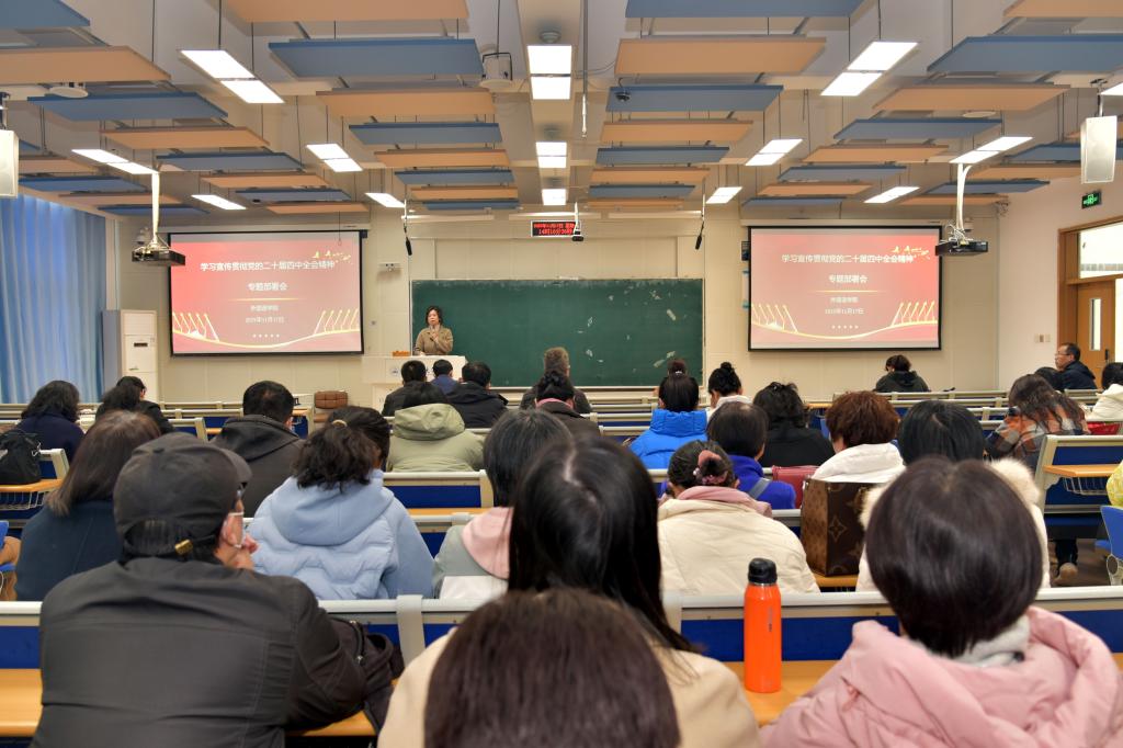11月17日下午,外国语学院在B201教室召开全院教职工大会,专题部署学习宣传贯彻党的二十届四中全会精神。