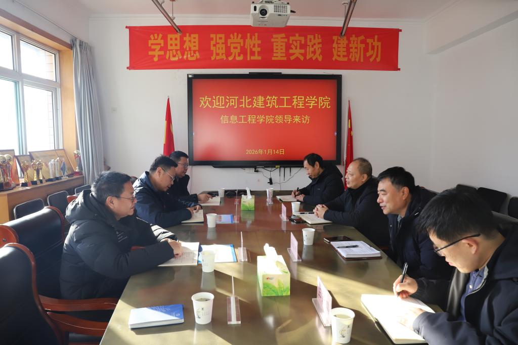 1月14日下午,河北建筑工程学院信息工程学院党委书记狄巨星、院长麻振华一行到我校管理科学与信息工程学院进行调研交流。学院党委书记王剑彪、院长孙立辉、副院长王芹鹏和经济管理实验中心主任曾文献出席座谈。