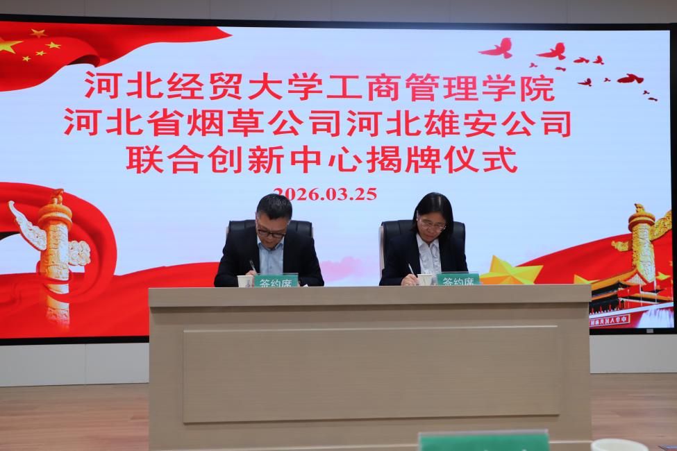 此次校企战略合作签约与联合创新中心揭牌,标志着双方合作迈入实质化、常态化新阶段。联合创新中心的成立,既是雄安烟草汇聚创新力量、破解发展难题的实践,也是工商管理学院推动科研成果落地、培育实用型人才的有效路径,契合雄安新区建设 “新时代创新高地” 的发展理念和应用型高校服务地方社会经济发展的功能定位。未来,双方将以联合创新中心为载体,实现优势互补、协同发力,加速创新成果落地应用,为推动 “智慧雄烟” 建设、助力雄安新区高质量发展注入新动能。(通讯员:工商管理学院 王晓东)