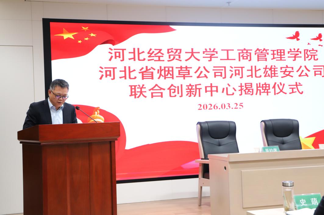 葛彦波在致辞中介绍,雄安烟草成立恰逢新区建设关键时期,肩负着服务新区发展、规范烟草市场、保障国家税收的重要职责。公司始终坚守行业宗旨,锚定“11335”高质量发展布局,为雄安新区经济社会高质量发展注入烟草力量。他表示,创新是雄安雄安烟草发展的灵魂,工商管理学院是区域内重要教学科研高地,此次产学研联合创新中心组建,是校企资源共享、赋能烟草行业创新发展的关键举措,雄安烟草将全力支持创新中心建设,提供充足的实践平台和资源保障,双方聚焦数字化转型、市场营销模式创新等核心方向,携手打造“智慧雄烟”创新标杆,推动科技成果落地转化,实现校企协同发展、互利共赢。