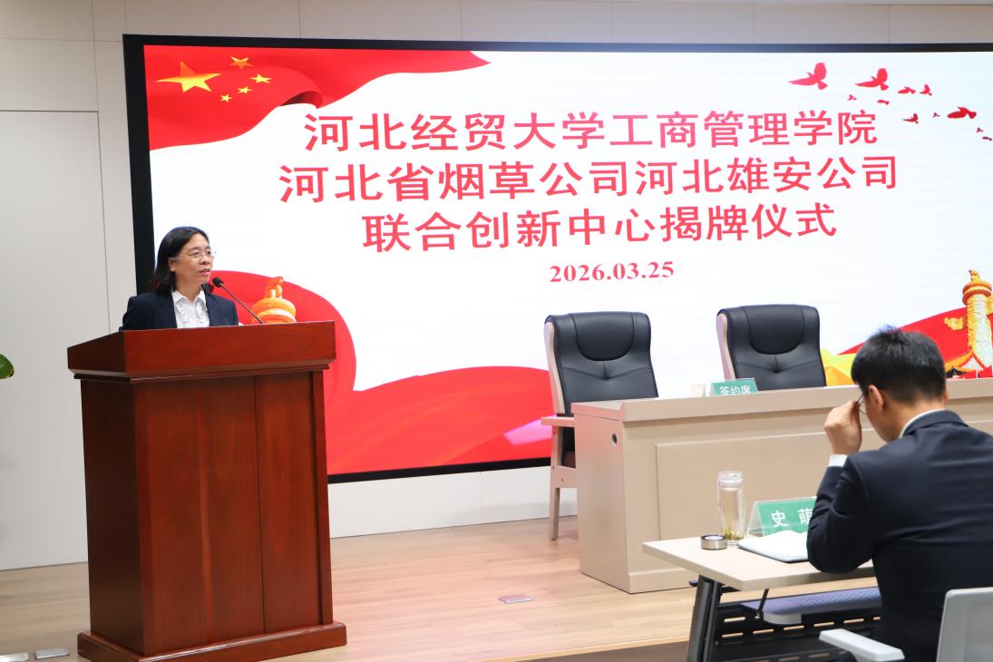 李桂荣从办学使命、学科优势、品牌建设、社会服务等方面介绍了学院情况。她表示,学院立足服务地方经济发展的办学使命,以“最懂河北企业”教育服务品牌为核心,构建“认知、服务、研究、献策、宣传”河北企业五大维度工作体系,在产教融合、校企合作、智库服务等方面取得显著成效。依托 MBA 项目与20余家河北知名企业共建实践基地,累计输送大批高素质管理人才。此次与雄安烟草共建联合创新中心及实践基地,学院将发挥管理学科优势与博士团队力量,在雄安烟草数字营销实践、商业模式创新、运营优化及平台战略实施等领域深化合作、产出创新成果,助力师生能力提升与产学研深度融合,期待双方拓宽合作、实现共赢。