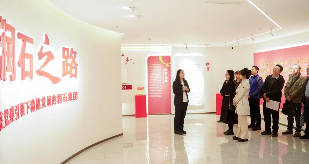 河北经贸大学代表团首先参观了润石集团“润石之路”党建文化展馆,全面了解企业在党建引领下的发展历程、文化底蕴及建设成效;随后走进产品展示区与加工区,实地考察企业产品研发、生产工艺及运营模式,直观感受企业创新实力与发展活力。