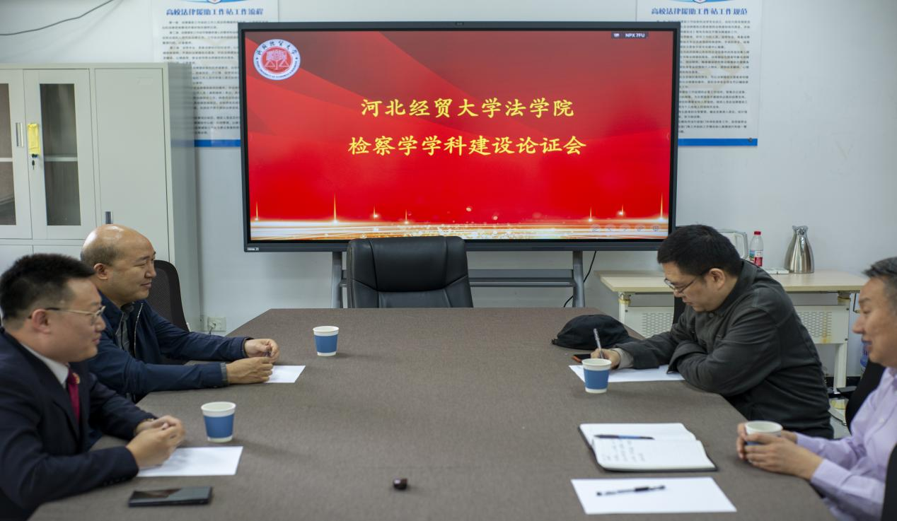4月16日,法学院先后举办两场检察学学科建设论证会。第一场会议由法学院院长胡海涛主持,特邀河北省检察院政治部干部教育培训处副处长吕方亮,河北省廊坊市人民检察院法律政策研究室副主任、二级检察官陈磊与会,我校法学院张亮副院长,王康副研究员参会。第二场会议由法学院副院长张亮主持,王康、杨天晓、袁佩君等老师及部分研究生共同参与研讨。