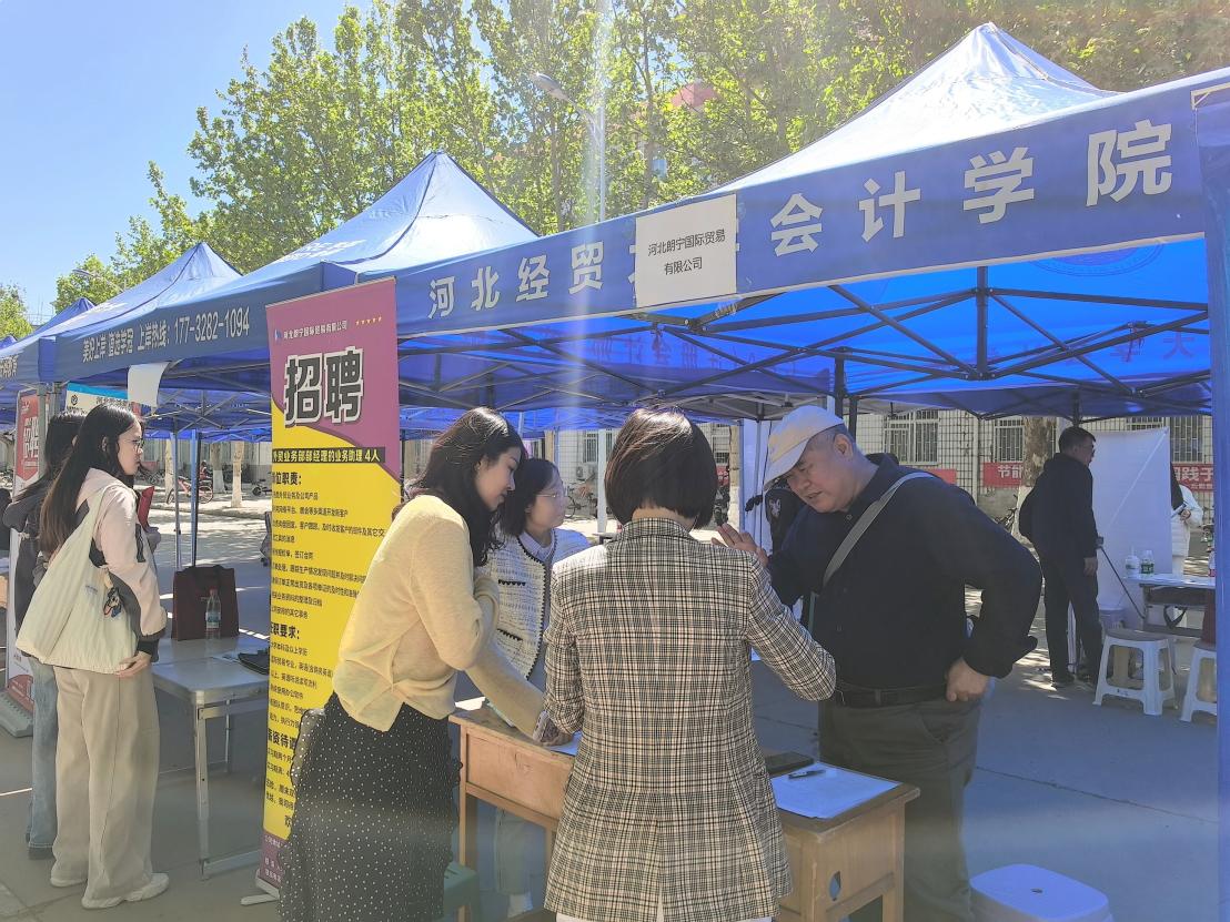 本次双选会紧扣经济学科特色,精准匹配专业需求,吸引了河北省物流产业集团有限公司、中信证券河北分公司、中信建投证券股份有限公司、华为终端慧通有限公司、河北省纺织品进出口有限公司、石药控股集团有限公司、河北衡基农资集团等近 30 家优质用人单位参会,企业性质涵盖国有企业、民营企业,工作地点覆盖石家庄、保定、北京、廊坊及全国多地。现场提供国际贸易、金融、数字经济、国际商务、市场营销、财务管理、人力资源、新媒体运营等对口岗位 200 余个,为经济学院学子提供了层次丰富、领域宽广、匹配度高的求职选择。