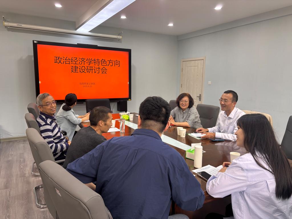 会上,李英分析了政治经济学在马克思主义理论学科中的特色方向和重要地位,学院未来将在马克思主义政治经济学、习近平经济思想等开展研究,从而服务地方经济社会发展。武建奇表示马克思主义政治经济学不仅体现学科特色,也彰显学校特色,将全力支持团队成员开展相关研究并给予指导。与会教师就具体研究内容、研究规划等做了深入交流。
