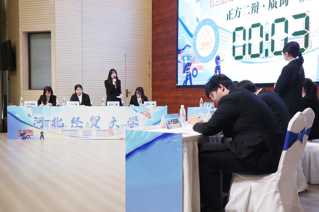 活动当天,河北经贸大学(正方)、河北师范大学(反方),围绕“防范校园用火用电安全风险,核心在于高校管理部门履行全面监管责任还是学生强化安全意识与行为自律”展开激烈交锋。正方辩论队引用近年社会消防事故案例,结合校园消防设施维护、违规用电巡查等实际场景,强调高校“全面监管”是防范风险的“制度基石”,从设施保障、监督问责等维度论证监管的不可替代性;反方则紧扣校园宿舍“飞线充电”、大功率电器违规使用等常见隐患,以学生行为习惯对火灾风险的直接影响为切入点,提出“自律意识是源头防控的核心”,并用校园消防安全现状数据支撑观点,让在场师生对“校园消防需监管与自律并重”有了直观认知。最终,河北师范大学获“最佳雄辩奖”,河北经贸大学获“睿智思辨奖”。