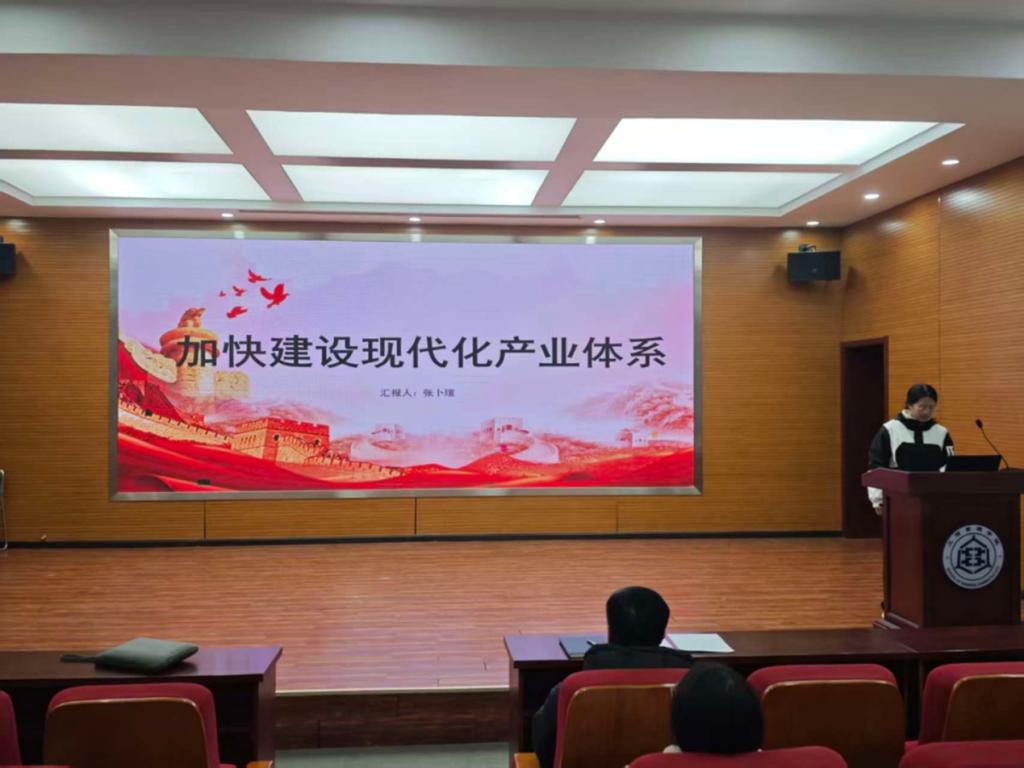 2025级工商管理专业研究生张卜瑄在微党课上以“加快建设现代化产业体系”为主题展开分享。首先,她援引习近平总书记关于“现代化产业体系是现代化国家的物质技术基础”的重要论断,强调建设现代化产业体系必须牢牢锚定实体经济这一发展根基,打造具备智能化、绿色化、融合化特征,且符合完整性、先进性、安全性要求的产业格局。在梳理“十四五”时期建设成果时,她结合长三角工业互联网、珠三角灯塔工厂等典型案例,用“每分钟2万组数据调度”“10万种汽车定制方案”等鲜活数据,展现了“十四五”以来我国在产业新动能培育、传统产业焕新、新兴产业壮大等方面的显著成就。随后,她结合工商管理专业特性,与同学们展开交流,呼吁同学们应主动洞悉产业发展规律,关注产业链供应链自主可控、生产要素优化配置等核心议题,为未来参与企业管理、助力产业升级储备能力。