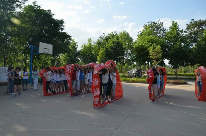 6月9日,人文学院2013级中文专业学生在校内开展了以“团结奋进 活力中文”为主题的阳光拓展活动。 此次活动共设有13个项目,88位同学分成10组参加各个项目的比拼。活动在3对3篮球竞技赛中拉开帷幕,场上激烈的争抢让同学们感受到团结合作的重要性。在“无敌风火轮”环节中,各小组成员利用废弃条幅和胶带制作一个可以容纳全队成员的封闭式大圆环,全队成员站到立起来的圆环上边走边滚动大圆环,增强了小组成员的配合能力。 学院党总支副书记仇静莉表示,单独一个人的力量是渺小的,但在团队中,每一个人的力量都是不可或缺的,懂得团结合作才能共赢。希望同学们以后团结友爱、互相帮助、共同进步。(撰稿:人文学院 王雨 摄影:新闻中心 霍英明)