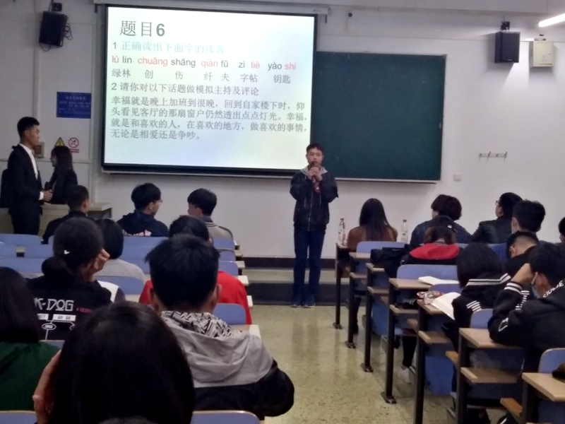 11月7日晚七点,文化与传播学院第一届主持人大赛决赛在北三教A202教室举办。院学生会主席邹昌烨、旅游学院学生会主席付宏宾、艺术团主席杨超祺、艺术团团长马文佳、广播台王宇飞、电视台刘正日担任嘉宾。